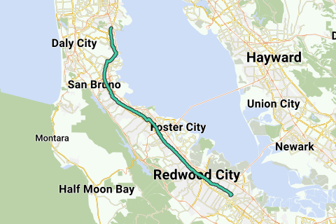 Itinéraire de vélo San Mateo Nord-Sud