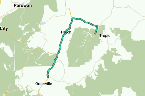 Cet itinéraire est la première partie d'un voyage du parc national de Bryce Canyon au parc national de Zion. Passez la nuit au confortable Bauers Canyon Ranch RV Park à Glendale. Après cela, direction Zion !