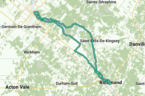 <p><a class="routeYou_embed" href="https://app.routeyou.com/fr/route/view/7354684?utm_source=embed&utm_medium=article&utm_campaign=routeshare&navigation=external" title="Drummondville - Richmond - L'Avenir - RouteYou" target="_blank"><img src="https://image.routeyou.com/embed/route/960x670/7354684-fr@2x.png" style="width: 100%; height: auto;" alt="Drummondville - Richmond - L'Avenir"></a></p>
