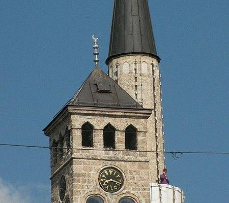 La moschea è stata costruita nell'anno 937 del calendario islamico come edificio centrale della fondazione voluta da Gazi-Husrev Beg, che comprendeva anche un maktab, una madrasa, un bezistan e un hammam; quest'opera del governatore ottomano del Sangiaccato di Bosnia ha costituito un momento cruciale per lo sviluppo della città.