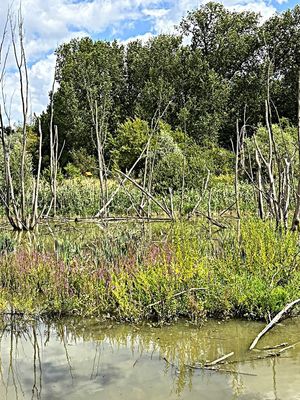 Il torrente serpeggia attraverso i polder di Bazel e Kruibeke , un mosaico verde-blu di acque libere, piane fangose, saline e foreste paludose, proprio lungo la Schelda.