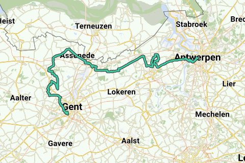 Questa è la versione L per il primo giorno del trittico a favore di "Back on Track". Il giro in bicicletta porta i partecipanti da AZ Maria Middelares a Gand ad Anversa.