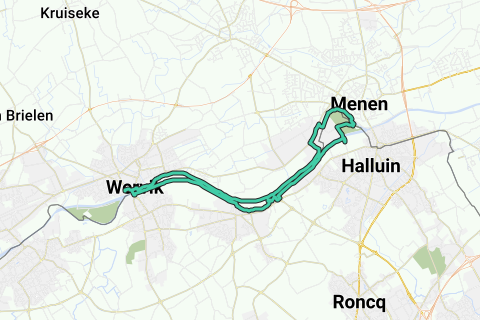 La passeggiata inizia a Wervik presso la chiesa sulla Schreve e si dirige verso Menen e ritorno.