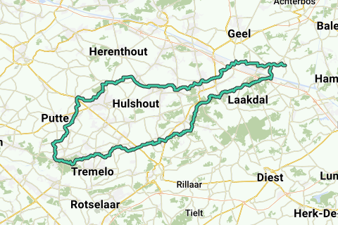 Zittaart - Eindhout - Varendonk - Bergom - Ramsel - Begijnendijk - Grootlo - Keerbergen - Rijmenam - Beerzel - Berlaar - Hallaar - Itegem - Wiekevorst - Zoerle-Parwijs - Wersterlo - Tongerlo - Zammel - Stelen - Winkelomheide - Zittaart - Meerhout