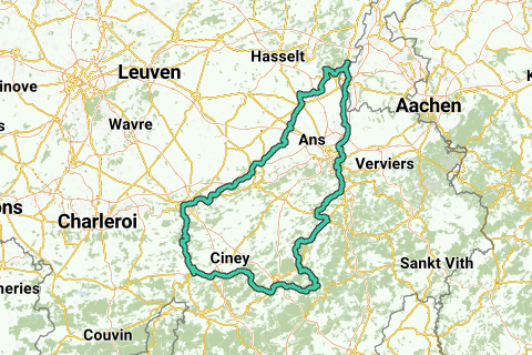 Partiamo da Lanaken in direzione di Tongeren, Namur, Dinant e lungo Marche-en-Famenne facciamo una deviazione verso Durbuy, Sprimont, Chaudfontaine, Maastricht per tornare nel posto da cui siamo partiti. La rotta è lunga 322 km, piena di piacere, belle vedute e sufficienti fermate intermedie per scaldarci un po'. È un viaggio che devi assolutamente fare in gruppo per poter condividere l'atmosfera. Un vero consiglio e questo riceve da Luc la classe Epic del viaggio ++.