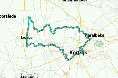 Questo percorso (GVO1) inizia a Sint Vincentius a Kortrijk. Dopo che il percorso segue per un po' il fiume Leie, si dirige verso nord verso Izegem. Verso Sint Jozef Moorsele attraverso il percorso di Kezelberg. Infine, ritorno al punto di partenza passando per Bissegem, il Doenaertpad e il Guldensporenpad.