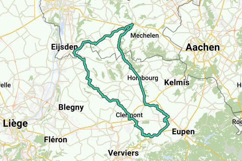 Partenza/fine: angolo Marktstraat/Rijksweg Gulpen. Salite: Grensweg Slenaken. Rue de Remersdaal Hombourgh (B). Gulpen Henri-Chapelle (B). Rue Mitoyenne Welkenraedt (B). Thier de Villers Bilstain (B). Chemin du Meunier Quatre Chemin (B). Cour la Saulx Lohirville (B). Les Waides/Fêchereux (parzialmente) Neufchâteau (B). Heiweg Mesch. Rondelenstraat Mheer. Slenakerweg Gulpen. Metri di dislivello: 765.