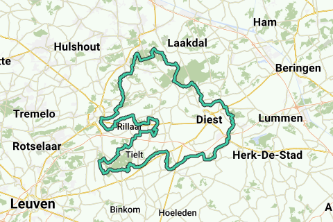 Herselt Mie Maan-Veerle Heide-Averbode-Okselaar-Molenstede-Schaffen-Zelem-Loksbergen-Assent-Molenbeek Wersbeek-Bekkevoort-Vlooybergtoren Tielt Winge-Roeselberg-St Pieters Rode-Hauwaart-Schoonderbuken-Keiberg-Rillaar-Aarschot-Langdorp-Langdonken Kapittelberg Herselt