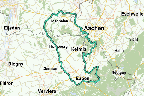 Inizio/fine: angolo Marktstraat/Rijksweg Gulpen. Salite: in arrivo. Metri di dislivello: 1.126. Sosta caffè: ristorante Wesertalsperre Eupen (B). (lun. chiuso)