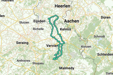 Inizio/fine: angolo Marktstraat/Rijksweg Gulpen. Salite: in arrivo. Metri di altitudine: 1.488. Sosta caffè: Les Jardin des Elfes Spa (B). (aperto tutti i giorni)
