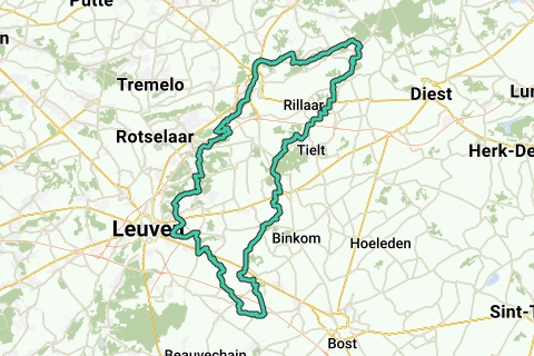 Un giro verso sud significa un po' di salita partendo da Langdorp. Inizia già con una breve salita in Papenakkerstraat verso Gelrode. Alla Moedermeule inizia la seconda salita della giornata. Siamo stati lanciati e pronti per il Chartreuzenberg a Holsbeek. Pedaliamo lungo l'abbazia di Vlierbeek e poco dopo ci aspetta il Trolieberg. A Korbeek-Lo attraverserò tre volte la Tiensesteenweg per evitare questa strada trafficata. Dopodiché ci sono leggere salite e discese. Appena prima di Willebringen c'è una piccola pendenza. Sulla strada da Boutersem a Lubbeek puoi dare gas per un paio di km. Oltre Lubbeek c'è di nuovo una salita, la Grotendries. Lungo alcune stradine di cemento strette arrivi poi alla Aarschotsesteenweg. Attraversa e ora una nuova salita verso Roeselberg. A Houwaart aggiungo la Wijngaardstraat, ma puoi anche lasciarla da parte. La Bergstraat a Testelt è ancora un'ultima breve salita. Un giro piuttosto impegnativo da fare insieme ad alcuni amici ciclisti.