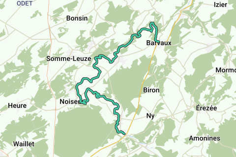 Il percorso è di circa 30 km di pagaiate fino al punto di uscita a Barvaux (lato sinistro prima del ponte). Lungo il cammino, ci sono diversi punti di ingresso e uscita ufficiali dove puoi fare delle pause. A Barvaux, puoi prendere un treno verso Liegi o Marloie. Il punto di uscita è a circa 800 metri dalla stazione di Barvaux. Se vuoi, puoi continuare a remare per ulteriori 5 km fino al punto di uscita a Bomal, che ha anch'esso una stazione ferroviaria.