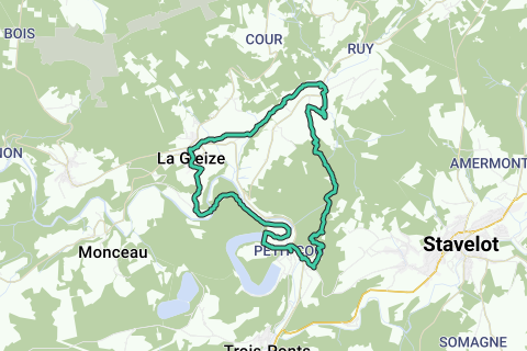 Da Coo inizia la seconda lunga salita (5 km, si inizia tramite il GR ma poi si devia da esso) a 435 m a Brume per scendere di nuovo lungamente (4 km) fino al punto più basso di 215 m sul ponte sull'Amblève a La Venne . Una terza, ripida salita (1 km) ci riporta a 315 m a La Gleize (possibilità di fermarsi) dopo di che (seguire il sentiero LG2 - il blocco rosso) una salita a 245 m ci riporta attraverso il vivace fiume 'Le Roannay' alla partenza a 280 m.