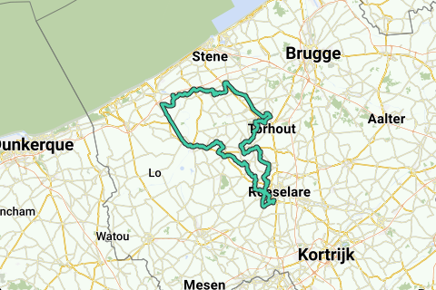 Il viaggio inizia sull'asfalto, ma l'atmosfera cambia rapidamente: ti immergi nella natura attraverso Zilverberg e Oostnieuwkerke. Le strade agricole e i tratti di campo scaldano le gambe, con vista sulle pianure delle Fiandre Occidentali. 🌾🌬️