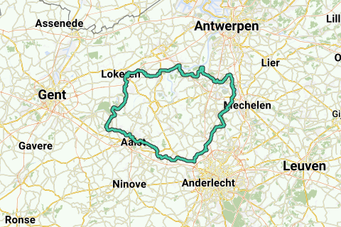 Partendo dalla Chiesa di Reet, ci dirigiamo verso i ponti blu. Da lì procediamo in direzione SSW verso Wemmel. Poi giriamo verso Ovest passando per Aalst fino a Lede. Una volta lì, avremo già coperto l'80% delle altimetrie. Successivamente in direzione Nord verso Lokeren. Da lì rimaniamo un po' vicino al fiume Durme fino a Temse. Lì attraversiamo il ponte. Poiché l'argine da Temse a Hingene è chiuso da tempo, percorriamo strade interne verso Hingene e poi verso Wintam. Attraversiamo le chiuse (prestare attenzione alla freccia verde aperta) fino a Boom. Eventualmente un gelato da Bjornies vicino alla Chiesa di Boom, o un km più avanti alla Muzette alla Schorre. Successivamente, 'solo' un breve tratto su per la Bosstraat (FORZA Wout van Aert, 1:01/47,3 km/h) per tornare alla Chiesa di Reet.