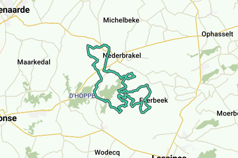 Guidiamo su dolci colline, lungo pendii boscosi e valli pittoresche. Dalla cima delle colline hai spesso una vista panoramica sul paesaggio. Percorriamo le strade campestri di Everbeek e le strade tortuose e poco trafficate. Facciamo una piccola deviazione oltre il confine linguistico, a Flobecq, per tornare al nostro punto di partenza attraverso Zegelsem.