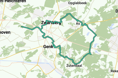 Itinerario in bicicletta tramite nodi ciclabili lungo e attraverso la brughiera, passando per i moderni e antichi edifici di C-mine e i siti minerari di Waterschei e Zwartberg.