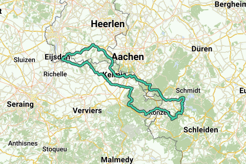 S.G.V. - S.M.V. - De Plank - Teuven – Hombourg – Montzen – Busch – Lontzen – Walhorn – Belven – Neudorf – Kortenbusch – Schwarzbusch - Wesertalsperre – Entenpfulh – Am Gericht – Eicherscheid – Hammer – Dedenborn – Rauchenauel – Rurberg – Woffelsbach – Steckenborn – Strauch – Rollesbroich – Lammersdorf – Waldsiedlung – Jägerhausstrasse – Rott – Rotterdell – Schmithof – Sief – Lichtenbusch – Hauset – Hergenrath – Kelmis – Moresnet-Chapelle – Gemmenich – Wolfhaag – Holset – Vijlen – Mechelen – Partij – Gulpen – Euverem – Banholt – Mheer - Mesch - S.G.V..