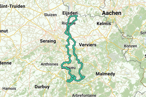 S.G.V. – Moelingen – ∆ Visé – Richelle – Argenteau – ∆ Sarolay – ∆ Rabosée – ∆ Xhavée – Saive – ∆ Évegnée – Retinne – Fléron – Bay Bonnet – Trooz – ∆ Les Forges – ∆ Stinval – Louveigné – ∆ Cornemont – Hotchamps – ▲ La Redoute – Florzé – Rouvreux – ▲ Chambralles – Awan – ▲ Niaster – Havelange – Lorcé ∆ – Werbomont – Neuville – Chession – Sur La Lienne ∆ – Moulin de Rahier – ∆ Rahier – Cheneux – ∆ Gare de Gleize – Froidcour – ∆ Stoumont ▲ – La Vecquée – Desnié – Winamplanche – ∆ Au Haftay – La Reid – ∆ Becco – ▲ Bois Renard – N606 – N62 – Banneux – Transenster – Nessonvaux ∆ – ∆ Olne – Soumagne ∆ – Micheroux – Évegnée-Tignée – Barchon – Housse – Saint-Remy – Dalhem – Bombaye – Warsage – S.G.V.