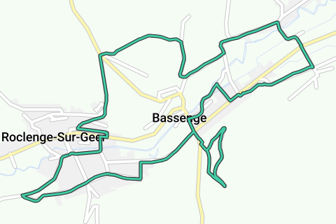 Da Place Louis Piron 5B, 4690 Rukkelingen-aan-de-Jeker, Belgio, percorso attraverso e intorno a Roclenge e Bassenge su strade asfaltate.