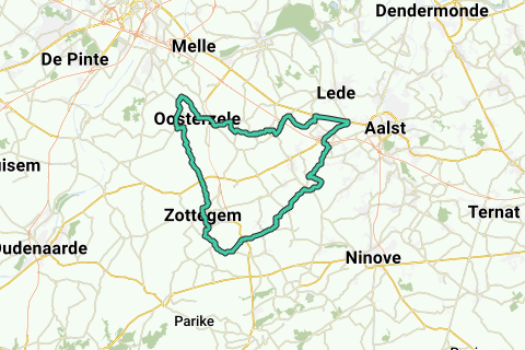 Attraverso Woubrechtegem e Aaigem e lungo la rotonda di Mere -con la statua di Lucien Van Impe- pedaliamo oltre la stazione ferroviaria di Erpe. Attraverso St Lievens-Houtem e Oosterzele ci fermiamo quindi alle stazioni ferroviarie di Moortsele, Scheldewindeke e Balegem. Per il percorso optiamo per strade di campagna e da Moortsele seguiamo consecutivamente il percorso ciclabile stazione Moortsele-stazione Scheldewindeke e stazioni Balegem villaggio e sud -Elene...