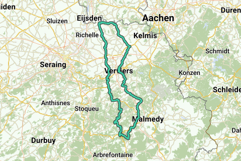 S.G.V. - Warsage - Neufchâteau - Les Fawes - Charneux - Bruyères - Grand-Rechain - Tribomont - Wegnez - Cornesse - Theux - Spa - Le Rosier - Cour - Bergoumont - La Gleize - Coo - Trois-Pont - Aisomont - Cote de Wanne - Stavelot - Rivage - Ster - Hockai - RAVeL44a - Cokaifagne - Tiège - Jehanster - Heusy - Andrimont - Henri-Chapelle - Merckhof - Hagelstein - De Plank - Ulvend - Kattenroth - S.G.V.