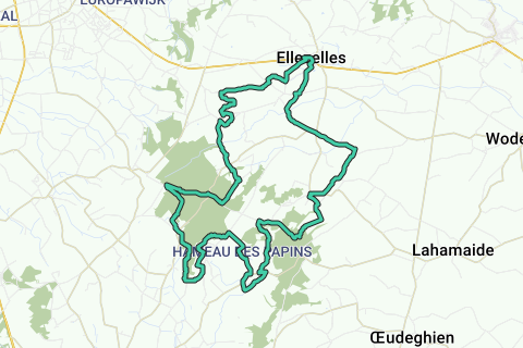 Passeggiata lungo i punti di collegamento a sud di Ellezelles nel Pays des Collines. Da Ellezelles si procede verso il Bois d'Hubermont e poi si prosegue verso il Bois d'Hergies e il bois Lefébre per tornare poi ad Ellezelles.