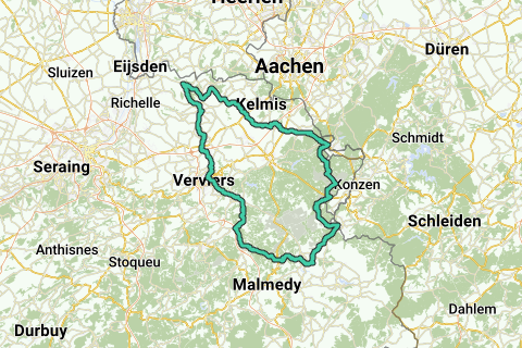 S.M.V. - De Plank - Teuven – Sippenaeken – Terstraten – Völkerich – Moresnet-Chapelle – Kelmis – Hergenrath – Astenet – Walhorn – Belven – Neudorf – Botz – Petergensveld – Osthertogenwald – Imgenbroicher Venn – Eupener Strasse – Brackvenn – Herzogenhügel – Waldweg – Küchelscheid – Vennbahn fino a Sourbrodt-Gare – Andrifosse – Ovifat – Longfaye – Xhoffraix – Hockai – Cokaifagne – Solwaster – Jalhay – Foyr – Stembert – Andrimont – les Plénesses – Houlteau – Thimister – Ligne 38 fino ad Aubel – Magis – S.P.V. – S.M.V.
