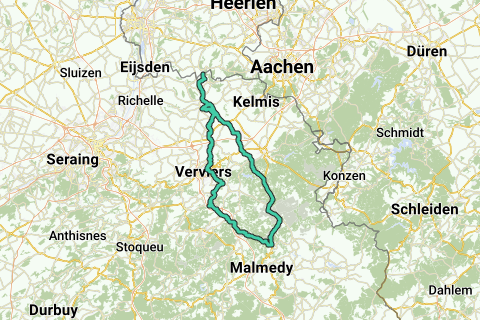 Teuven – Rode Bos – Hagelstein – Henri – Chapelle – Welkenraedt – Baelen – Membach – Belle Croix – Baraque Michel – Mont Rigi – la Spinette – Hockai – Sart – le Wayai – Tiège – les Biansions – Polleur – Jehanster – la Boverie – Stembert – Renoupré – Andrimont – les Plénesses – Elsaute – Clermont – La Clouse – Aubel – Merkhof – Hagelstein – Rode Bos - Teuven