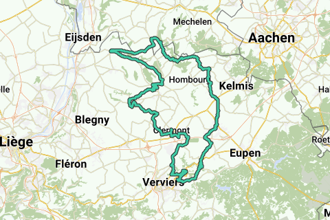 Itinerario Voerstreek 20 da Slenaken. Inizio/fine: grande parcheggio piedi Loorberg Slenaken. Salite: Grensweg Slenaken 400 m., max. 10.0%. Kasteelstraat Teuven (B) 1.200 m., max. 10,0%. Rue de Lattenheuer Plombières (B) 1.100 m., max. 9.0%. Windt Plombières (B) 950 m., max. 9.0%. Rue de Birken Montzen (B) 600 m., max. 6.0%. Mur de Limbourgh (parzialmente) Limbourgh (B) 950 m., max. 13,0%. Rampe de Renoupré Andrimont (B) 1.600 m., max. 13,0%. Mur Grises Pierres Val-Dieu (B) 500 m., max. 15,0%. Rue Chateau Magis Aubel (B) 1.800 m., max. 5,0%. Schophemerheide 's-Gravenvoeren (B) 2.100 m., max. 12.%. Nel percorso anche diverse salite anonime. Dislivello totale: 1.224. Sosta caffè: Au Renouveau, Place de la Halle 4, Clermont. (lun/ma chiuso) (Informarsi in anticipo se il locale è aperto. Tel. +32-495650482. Il gestore ha orari di apertura piuttosto flessibili).