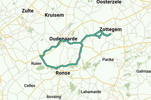 Un'anteprima di un percorso nelle Ardenne Fiamminghe che inizia e termina presso il cancello delle Ardenne Fiamminghe (Zottegem) con nella parte 1, tra l'altro, la Vijflindenlaan a Rozebeke (8% max) e il Hotond (9%) e nella parte 2 l'Edelare (6%) e il Vlamme (10%).