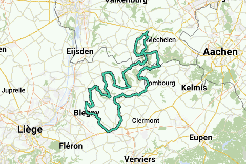 Rondita Voerstreek 39 da Slenaken. Partenza/fine: grande parcheggio ai piedi del Loorberg Slenaken. Salite: Loorberg Slenaken 1.500 m., max. 8.0%. Plankerweg Teuven (B) 1.400 m., max. 8.0%. Magis, St. Pieters-Voeren (B) 2.900 m., max. 7.0%. Bois de Mauhin (parzialmente) Val-Dieu (B) 1.300 m., max. 6.0%. Noblehaye Hervé (B) 2.900 m., max. 7.0%. Côte de Gaet St. Jean-Sart (B) 900 m., max. 6.0%. Rue de Merckhof (parzialmente) Aubel (B) 1.400 m., max. 5.0%. Rozengaerden Remersdaal (B) 1.000 m., max. 12.0%. Kasteelstraat Teuven (B) 1.200 m., max. 10.0%. Eperheide Epen 1.400 m., max. 8.0%. Nel percorso ci sono anche diverse salite senza nome. Metri di altitudine: 1.350. Sosta caffè: Au Point Chaud, Rue de la Clef 74, Hervé (B) (aperto tutti i giorni).