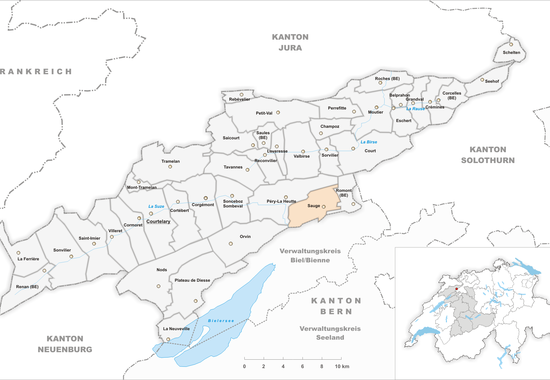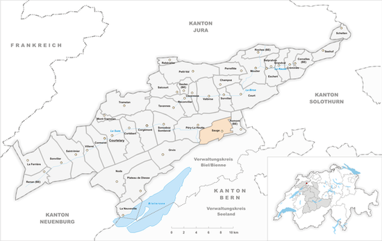 Il comune di Sauge è stato istituito il 1º gennaio 2014 con la fusione dei comuni soppressi di Plagne e Vauffelin; capoluogo comunale è Vauffelin.