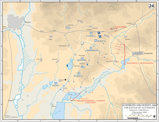 La battaglia di Austerlitz , detta anche battaglia dei tre imperatori, fu l'ultima e decisiva battaglia svoltasi durante la guerra della terza coalizione, parte delle guerre napoleoniche.Fu combattuta il 2 dicembre 1805 nei pressi della cittadina di Austerlitz tra la Grande Armée francese composta da circa 73 000 uomini comandati dall'imperatore Napoleone Bonaparte e un'armata congiunta, formata da russi e austriaci, composta da oltre 85 000 uomini comandati dal generale russo Michail Illarionovič Kutuzov, con la collaborazione del generale austriaco Franz von Weyrother che era stato l'ideatore del piano di battaglia austro-russo.