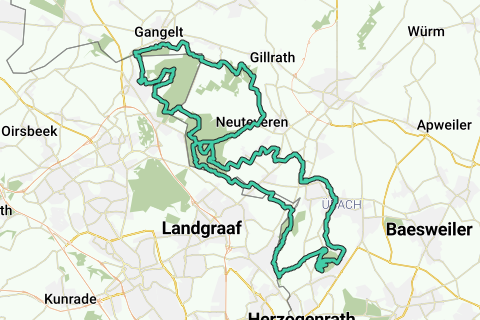 Oltre a queste aree, ci sono fortunatamente anche molti altri tratti sterrati che vengono percorsi su questo percorso, cioè intorno alla valle del Roode Beek in Germania, vicino alla base aerea NATO di Neuteveren (D) con una salita, nella valle di Worm, nella valle di Übach e nell'area agricola tra la Heide di Teverena e la valle di Worm (le strade sterrate qui sono utilizzate anche dal traffico agricolo). Il vero punto culminante sono i sentieri sterrati che portano alla cima del monte minerario Grube Adolf con una sezione molto ripida di circa il 22%! La sezione più ripida (senza uscita) verso la cima del monte minerario può essere saltata, ma in tal caso perderai le splendide vedute dalla cima.