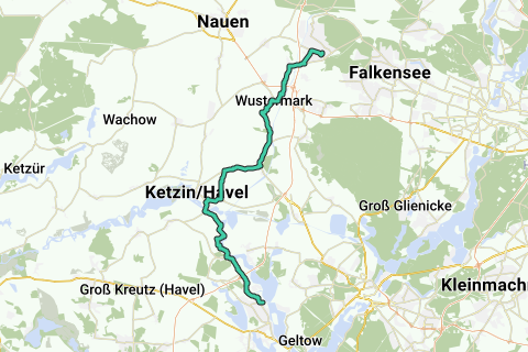 Percorso: Brieselang, Wustermark, Falkenrehde, Paretz, Uetz (deviazione), Ketzin/Havel, Werder (Havel)