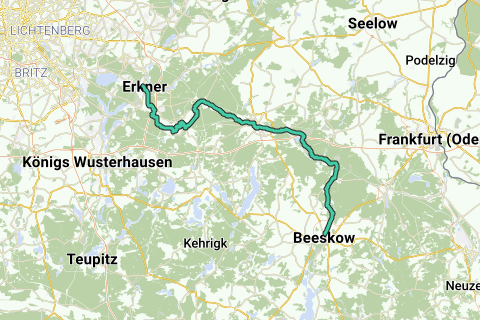 La quarta tappa della parte brandeburghese della Spreeradweg si estende per 72 chilometri da Beeskow a Erkner. Da Beeskow si procede attraverso Berkenbrück lungo la Sprea fino alla città cattedrale di Fürstenwalde/Spree. Attraverso Hangelsberg e Spreeaue si arriva fino ad Erkner attraverso il paesaggio naturale della pianura della Sprea. Lunghezza: 72 Km Inizio: Beeskow Fine: Erkner Logo / Segno del percorso: logo "Spreeradweg" con la Sprea e la Porta di Brandeburgo Arrivo: Da Berlino Hauptbahnhof con l'RE2 (Cottbus) fino a Königs Wusterhausen. Da qui proseguire con l'RB36 (Francoforte / Oder) fino a Beeskow (circa 2h). Partenza: Da Erkner con l'RE1 (Brandeburgo) fino alla Hauptbahnhof di Berlino (circa 30 minuti). Percorso: Beeskow, Raßmannsdorf, Neubrück, Berkenbrück, Fürstenwalde / Spree, Hangelsberg, Mönchwinkel, Hartmannsdorf, Erkner Attrazioni / informazioni utili: Beeskow: "La casa più antica", castello, museo regionale, chiesa di Santa Maria, galleria Festina Lente, laboratorio d'arte di Rostyslav Voronka Naviglio di Kersdorfer: centro informativo sulla storia del canale Oder-Spree Fürstenwalde / Spree: museo, cattedrale di Santa Maria, museo della birra Hartmannsdorf: Chiesa del miele Erkner: veicoli storici della S-Bahn, museo locale nella vecchia scuola, museo locale nel cortile del museo a Sonnenluch, museo Gerhart Hauptmann, chiesa di Geneza, chiesa di San Bonifacio Possibilità di combinazione Torne dei castelli del Brandeburgo Tour della Brandeburgo Tour Oder-Spree Sulle tracce dell'era glaciale Lungo la Sprea Condizioni del tracciato / sviluppo del percorso: Il percorso si snoda principalmente su strade asfaltate e quasi sempre ben sviluppate. Mappe / letteratura: "Bikeline Radtourenbuch, Spreeradweg. Dalla sorgente a Berlino", 1:75.000, Esterbauer, edizione: 8. edizione (12 giugno 2015), ISBN-13: 978-3850000703, 13,90 Euro