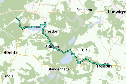 La tappa si svolge per lo più su strade sterrate attraverso forme di paesaggio variabili da Trebbin a Seddin. Durante questa tappa affronterete 129 metri di dislivello in salita e 127 metri in discesa, che si trovano a un'altezza massima di 93 m s.l.m. e a un'altezza minima di 33 m s.l.m. Lunghezza: 26 km (6h) Inizio: Trebbin Destinazione: Seddin Logo / segnale del percorso: Cerchio blu pieno su sfondo bianco Arrivo: Da Berlino Hauptbahnhof con il RE3 (Lutherstadt Wittenberg) fino a Trebbin (circa 30 minuti). Partenza: Da Seddin con il RE7 (Wünsdorf-Waldstadt) fino a Berlino Hauptbahnhof (circa 45 minuti). Percorso: Trebbin, Schönhagen, Blankensee, Stücken, Wildenbruch, Seddin, Neuseddin Descrizione del percorso: Proprio dietro Trebbin entrerete nel Parco Naturale Nuthe-Nieplitz. Inizialmente si passa attraverso il Monte Löwendorfer (103m), dove dal 2012 una torre panoramica alta quasi 22m offre ampie vedute del paesaggio e, in buone condizioni meteo, fino a Berlino. Foreste di rottura e prati allagati caratterizzano l'area ricca di laghi che fornisce condizioni ideali di vita per le gru. In primavera e in autunno si possono osservare migliaia di uccelli migratori in sosta nei laghi a bassa profondità. Tra questi anche aironi, cicogne, oche selvatiche e pavoni. Vale la pena fare una piccola deviazione al Centro del Parco Naturale nell'area faunistica del Glauer Tal. A Blankensee potete osservare il passaggio degli uccelli dal molo. Con il castello e il parco del castello, il museo di villaggio e le chiese e la sua posizione sul lago omonimo, Blankensee è l'attrazione principale di questa tappa. Si prosegue attraverso Stücken verso Kähnsdorf al lago Seddiner, dove la spiaggia a Kähnsdorf invita a un rinfrescante bagno nel lago. Luoghi d'interesse: Parco Naturale Nuthe-Nieplitz: Torre panoramica, Centro del Parco Naturale Blankensee: Castello e parco del castello, Museo di villaggio e chiese Caratteristiche del percorso / sviluppo della strada: nessuna informazione Mappe / letteratura: "66-Seen-Weg, Hikeline Guida al trekking", 1:50.000, Editore: Esterbauer, Edizione: 2 (2012), ISBN-13: 978-3850005012, 14,90 Euro "Mappa del trekking e del cicloturismo 66-Seen-Weg: Alle bellezze naturali intorno a Berlino", 1:50.000, Editore: Barthel, A., Edizione: 2 (1 ottobre 2011), ISBN-13: 978-3895911552, 7,90 Euro Reschke, Manfred: "La camminata dei 66 laghi. Alle bellezze naturali intorno a Berlino", Trescher Verlag; Edizione 8, aggiornata A. (2017), ISBN 978-3-89794-369-8 (www.trescher-verlag.de/reisefuehrer/deutschland/66-seen-wanderung.html)