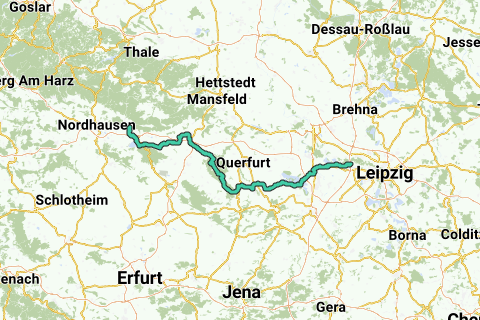 Horburg-Maßlau - Dölkau - Zweimen - Zöschen - Wallendorf - Luppenau - Merseburg - Beuna - Frankleben - a nord di Braunsbedra, a sud intorno al Geiseltalsee - Mücheln - Albersroda - Schnellroda - Kalzendorf - Steigra - Karsdorf - Reinsdorf - Nebra - Wangen - centro visitatori "Arche Nebra" - Mittelberg - Hermannseck - Ziegelroda - Landgrafenroda - Allstedt.