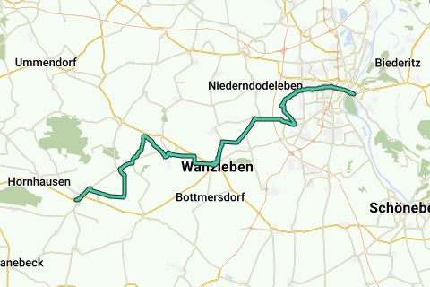 A Magdeburgo si ciclabila inizialmente su piste ciclabili a fianco della strada attraverso i ponti sull'Elba verso il centro città. Dietro la stazione centrale fino al quartiere di Diesdorf, si può pedalare lungo il fiume Schrote. Tra Diesdorf e Hohendodeleben in certi tratti c'è una strada sterrata e da Ottersleben si prosegue su una pista ciclabile a fianco della strada.