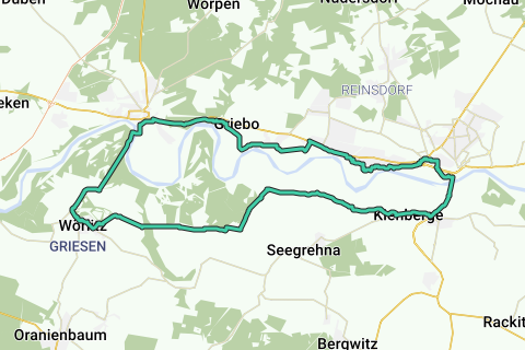 Il giro parte dalla piazza del mercato di Lutero Wittenberg. Da qui si segue la buona segnaletica della pista ciclabile dell'Elba fino al ponte dell'Elba, dirigendosi verso Pratau. Questa prosegue direttamente dietro le dighe attraverso le pianure dell'Elba fino a quando si intravedono da lontano le prime "propaggini" del Giardino del Ducato di Dessau-Wörlitz.