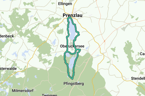 Percorso: Prenzlau, Seelübbe, Seehausen, Warnitz, Suckow, Fergitz, Potzlow, Zollchow, Röpersdorf, Prenzlau