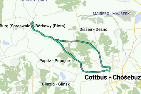 Attrazioni / Curiosità: Burg-Dorf: Casa del patrimonio, Torre di Bismarck, Weidenburg, Centro informativo "Schlossberghof" della Riserva della Biosfera del Spreewald con la Casa Annemarie-Schulz. Werben: Chiesa sui percorsi in mattoni in stile tardo gotico, Corte Seydlitz, Fabbrica di erbe del Spreewald nel "Un-Kraut-Laden" dello chef del Spreewald Peter Franke. Cottbus: Altmarkt Cottbus con il Museo delle Farmacie di Brandeburgo, Chiesa superiore, Chiesa del monastero, Teatro di Stato di Cottbus, Museo dell'Aeroporto, Parco Fürst-Pückler a Branitz con castello e piramide d'acqua, possibilità di gite in gondola nel parco. Possibilità di combinazione: Strada per biciclette Spree. Strada per biciclette dei cetrioli. Condizioni del percorso / Sviluppo del tracciato: nessuna indicazione.