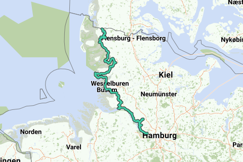 La pista ciclabile della costa del Mare del Nord, la parte tedesca del North Sea Cycle Route, si snoda per circa 350 km attraverso lo Schleswig-Holstein. Il percorso corre lungo il mare, attraverso le località di Niebüll, Dagebüll, Husum, St. Peter-Ording, Büsum e Meldorf fino a Brunsbüttel. Da lì si prosegue lungo l'Elba attraverso Glückstadt e Wedel fino ad Amburgo.