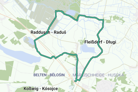 Percorso: Vetschau/Spreewald, Stradow, Göritz, Raddusch, Radduscher Kaupen, Burg, Naundorf/Fleißdorf, Suschow, Vetschau/Spreewald