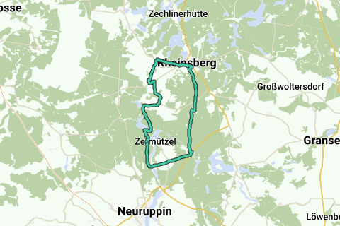Percorso: Rheinsberg, Binenwalde, Tornow, Stendenitz, Zermützel, Molchow, Zippelsförde, Rheinsberg
