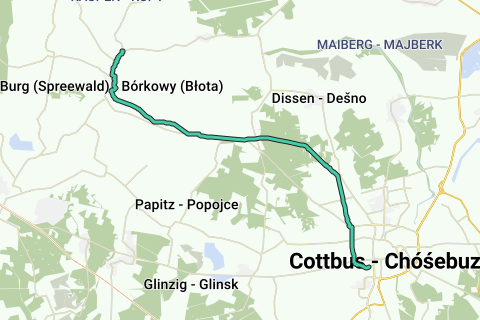 Curiosità / Informazioni utili: Burg-Dorf: Heimatstube, Torre di Bismarck, Weidenburg, Centro informazioni "Schlossberghof" della riserva della biosfera dello Spreewald, Parco termale e di leggende, Distilleria Hofbrennerei di Burg. Chiesa a Werben. Stazione di Spreewald Briesen e chiesa. Centro storico di Cottbus. Possibilità di combinazione: Ciclovia dello Spree, Ciclovia dei cetrioli. Condizioni del percorso / Sviluppo del tracciato: principalmente strade asfaltate ben praticabili.