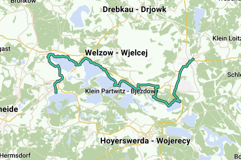 Percorso: Senftenberg, Reppist, Großräschen, Lieske, Partwitz, Bluno, Sabrodt, Spreetal, Schwarze Pumpe, Spremberg