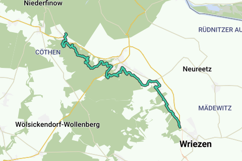 Dal parcheggio di Wriezen si raggiunge Altranft, non lontano dalla linea ferroviaria e dalla strada (all'arrivo in treno inizialmente verso il lago cittadino / parcheggio). Prima di Rathsdorf si osserva la torre delle cicogne, il camino di un'antica fornace. Il percorso si sviluppa lungo la linea ferroviaria. In Altranft si attraversano i binari. La deviazione attraverso il paese porta al museo all'aperto brandeburghese nel parco del castello. All'uscita del paese si trova un sentiero didattico geologico. A Bad Freienwalde, l'Oderlandweg segue ora la traccia del sentiero delle torri. Con diverse curve, il percorso si snoda attraverso la foresta di Freienwalde, prima di arrivare alla cappella. Seguono di nuovo diverse curve, con molte salite e discese, e si giunge all'improvviso a un'imponente area di salti, raro da trovare nelle zone montuose. Un sentiero conduce alla B158. Dopo averla attraversata, si passa davanti alla torre delle civette. Seguono curve, sempre accompagnate da salite e discese, fino ad arrivare al lago del diavolo. All'inizio del sentiero cresta c'è la deviazione per la torre di Bismarck. Dalla cabina di Tobbenberg un sentiero scosceso conduce a Falkenberg. Attrazioni: Wriezen: Museo cittadino Altgaul: Torre delle cicogne Altranft: Museo Altranft - Laboratorio per la cultura rurale, Sentiero didattico geologico, Villaggio museale, Museo all'aperto brandeburghese, Chiesa del villaggio, Giardino naturale Sachsenhof Bad Freienwalde: Castello, Torre di salto, Torre delle civette, Torre panoramica sul Galgenberg, Giardino dimostrativo e didattico "Casa della cura della natura", Museo Oderland, Chiesa di San Nikolai, Centro storico, Torre di Bismarck Possibilità di combinazioni: Sentiero delle torri Caratteristiche del percorso / Sviluppo del tracciato: Sentieri di bosco e campagna, strade Mappe / Letteratura: "Seenland Oder-Spree Nordteil (Distretto di Märkisch Oderland): Mappa ciclistica e dell'esperienza", scala 1:75.000 / 1:175.000 Mappa pieghevole, Editore: Pietruska; Edizione: 3 (22 novembre 2011), ISBN-10: 3934895824, 6,90 euro.