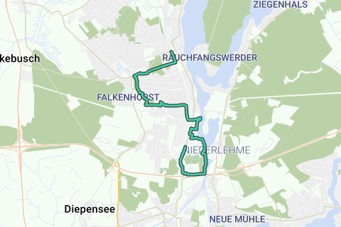 Percorso: Stazione S-Bahn Zeuthen - passaggio a livello Ahornallee / Forstweg - Bahnstraße - Hankelweg - Dorfstraße - NSG Höllengrund - Kurpark Wildau - Birkenallee - Freiheitsstraße - Dahme e Niederlehmer Werder - Friedrich-Engels-Straße - Karl-Marx-Straße - Breite Straße - quartiere Schwartzkopff - Villa al lago - sentiero escursionistico Dahme - Stazione di Wildau